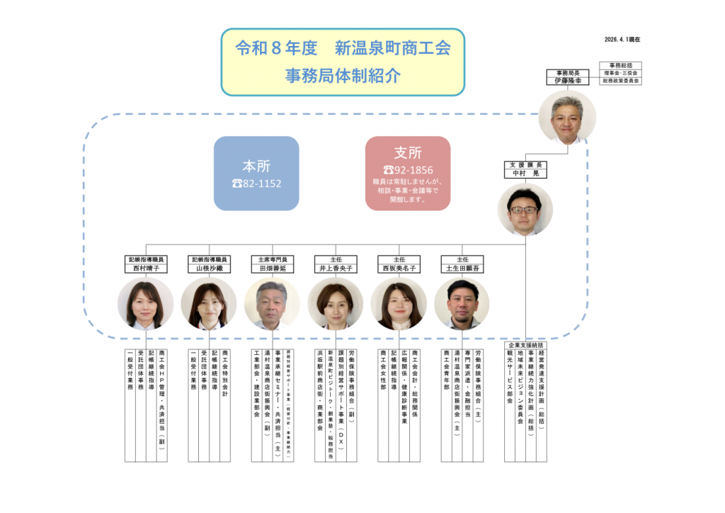 令和8年度事務局組織図・担当業務について以下のようになります。